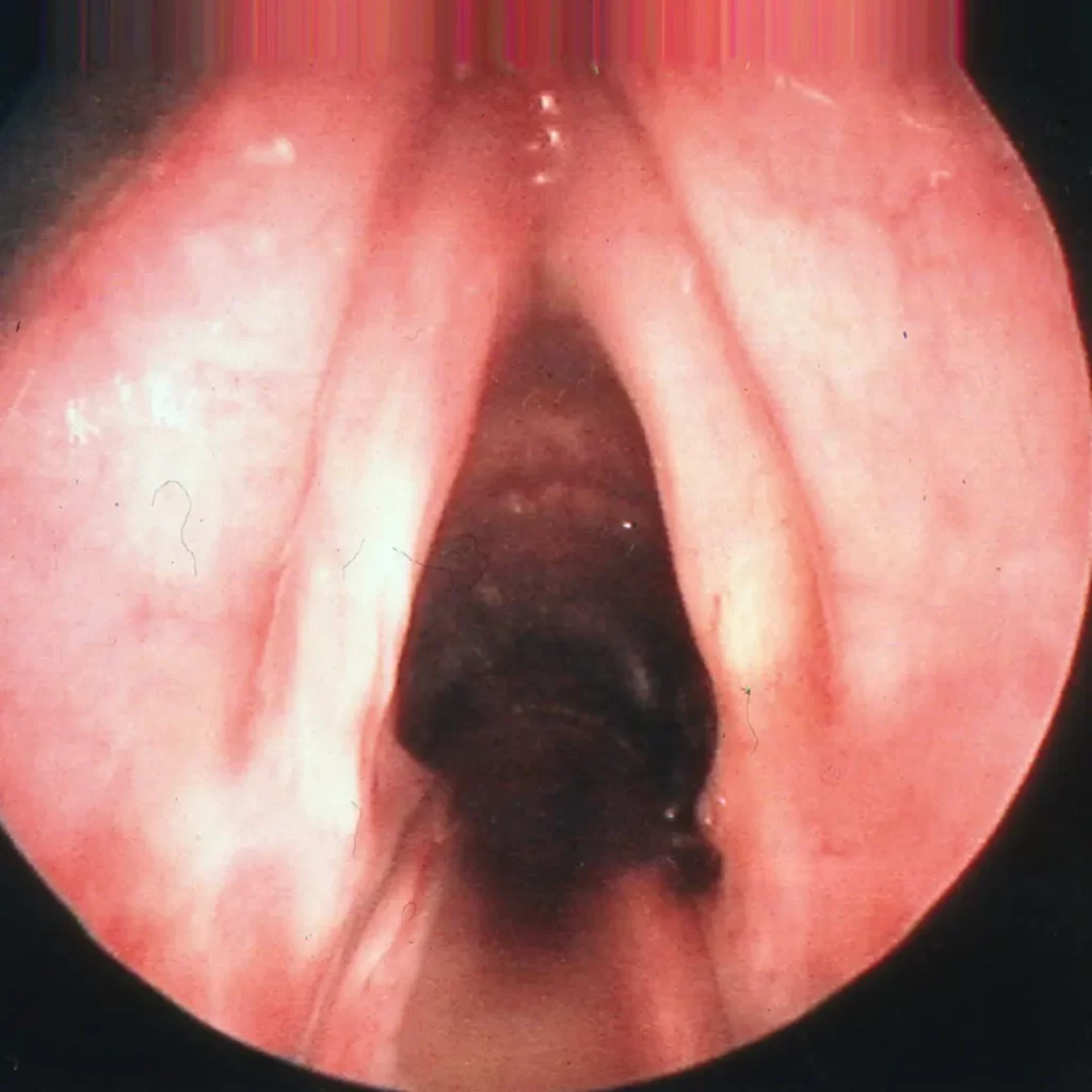 Six weeks post PDT with normal vocal cords.