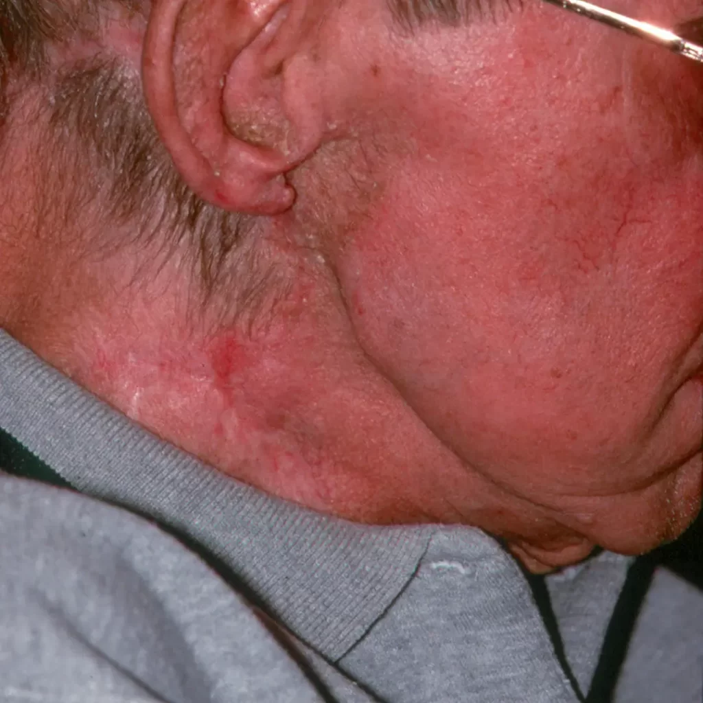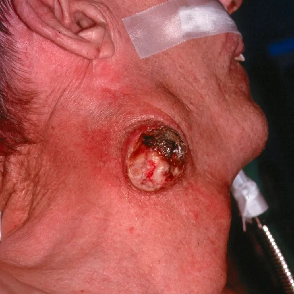 A patient with recurrent squamous cell cancer metastatic to the neck.